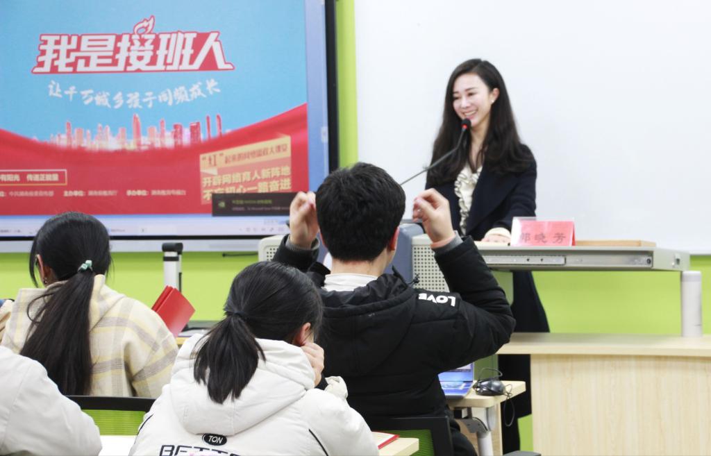 郭晓芳,1999年从湖南第一师范学院毕业,现为湖南省教育厅“我是接班人”网络大课堂总班主任、总制片人。全国未成年人思想道德建设先进工作者,长沙市“感动星城·魅力教师”。2019年以来,其“我是接班人”网络大课堂已播出20余堂大课、400余堂小课,全省1000余万学生同步参与学习,学习人次超过5亿。新华社报道“如果教师能’自带流量’,郭晓芳就是名副其实的’网红’”。央视新闻、人民日报、光明日报、学习强国等省部级以上主流媒体均对其予以高度评价。