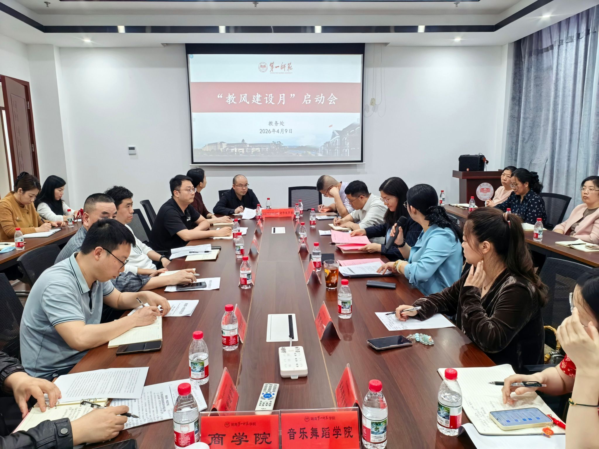 4月9日,我校“教风建设月”活动启动会在百熙楼214会议室举行。校党委委员、副校长蒋蓉出席会议并讲话,教务处全体人员、各二级学院教学管理人员参加会议。教务处处长张娴主持会议并解读活动方案。